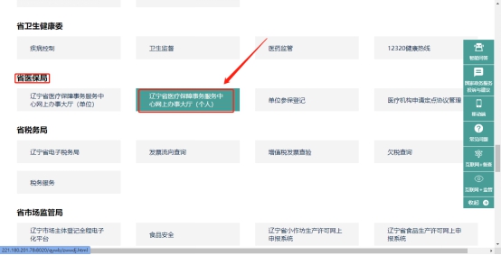 下滑找到“省医保局”,选择“辽宁省医疗保障事务服务中心网上办事大厅(个人)”